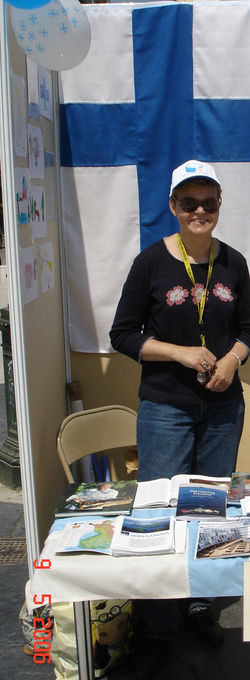 ![]() Local museum of Ruokolahti in Southern Carelia region | ![]() Day of Europe, Aristoteles square of Thessaloniki, 2006 | ![]() Volunteer in Gymnaestrada (International Gymnastics event), Helsinki, 2015 |